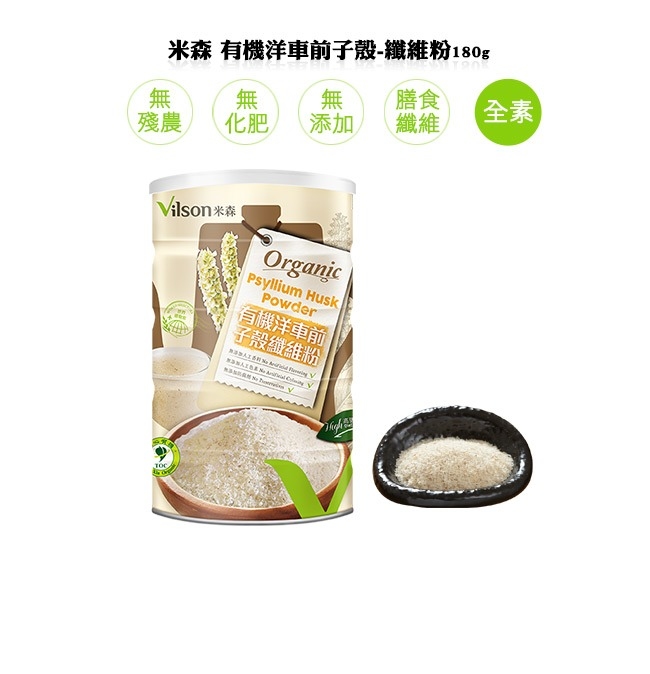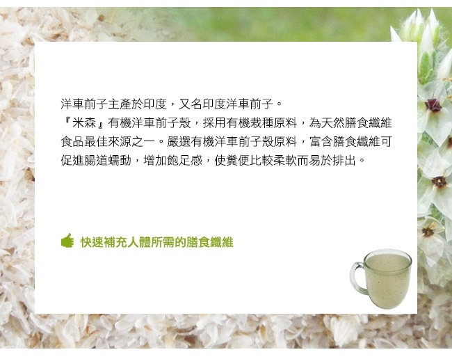 1.直接取出1湯匙(約4~5公克)的有機洋車前子殼(纖維粉)。