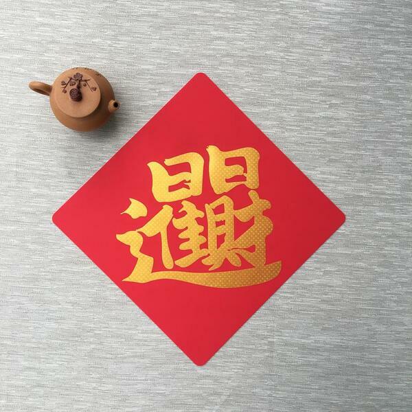 矽膠無痕窗貼-日日進財 298斗方(金)