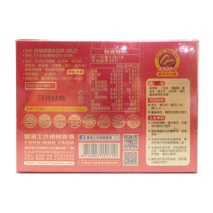 豐滿生技-台灣超級5薑黃(膠囊) 550毫克*20粒/盒