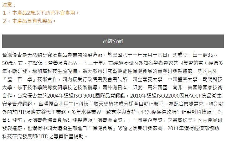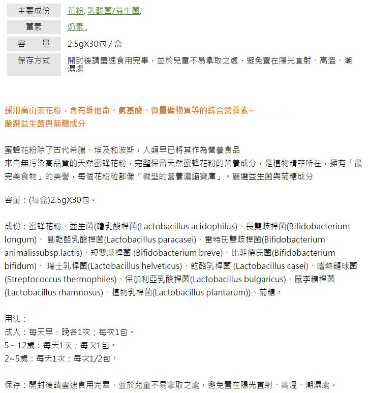 | 包裝份量: | 每一單位(份量)2.5公克,本包裝含30份 |