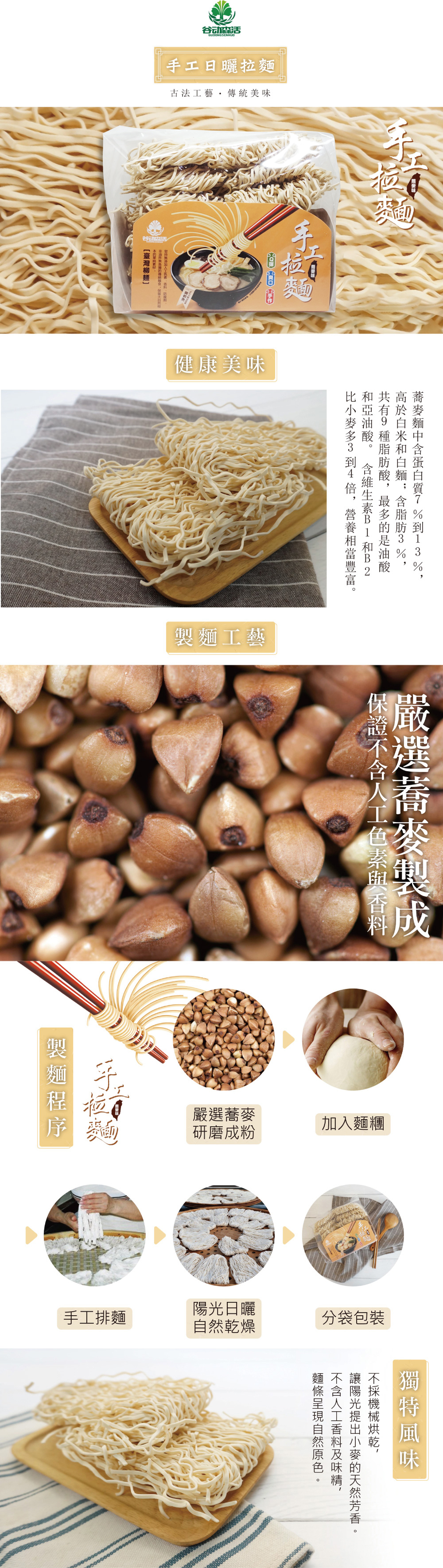 穀動森活-日曬手工拉麵 900g/包 (蕎麥口味)