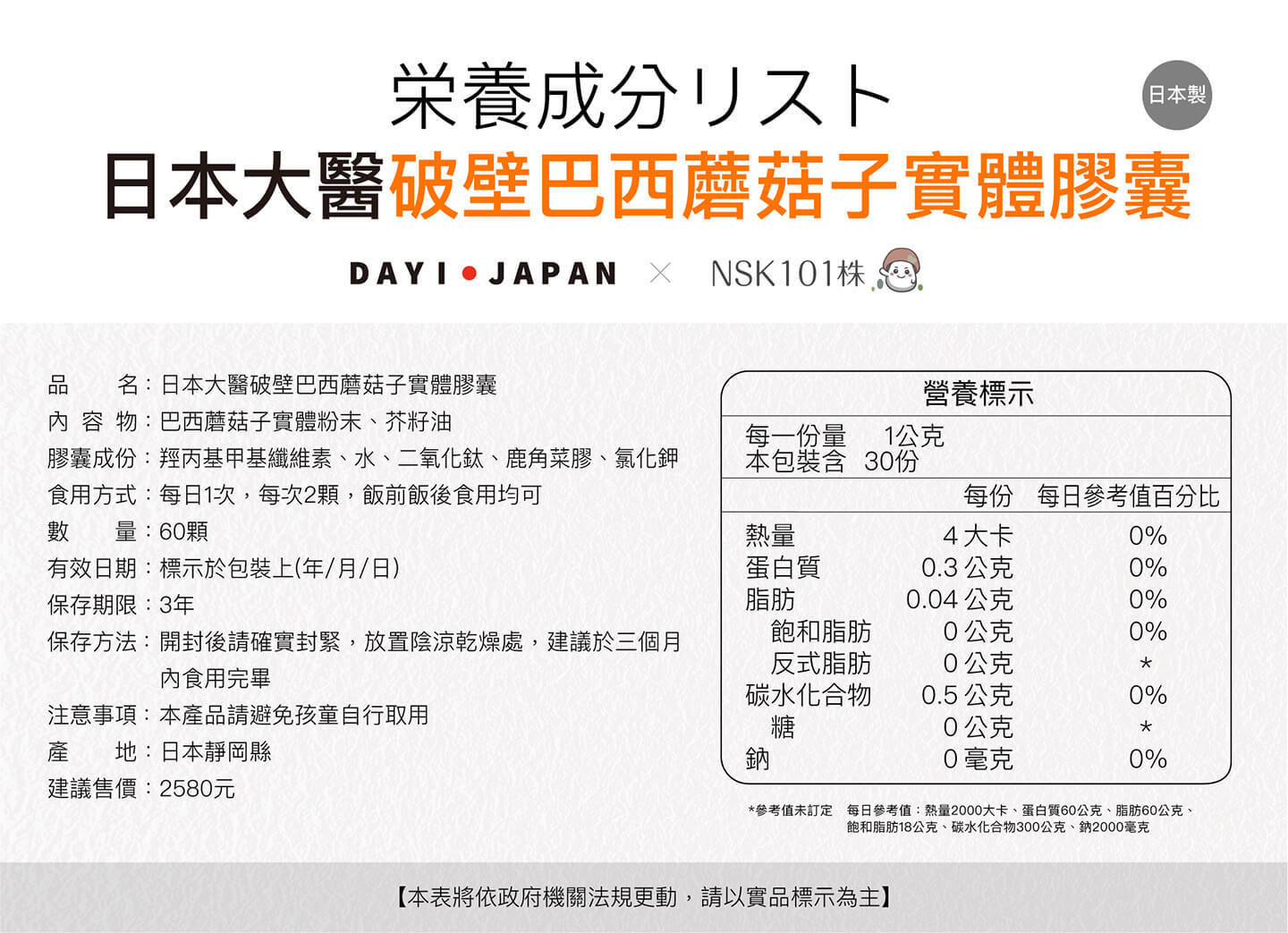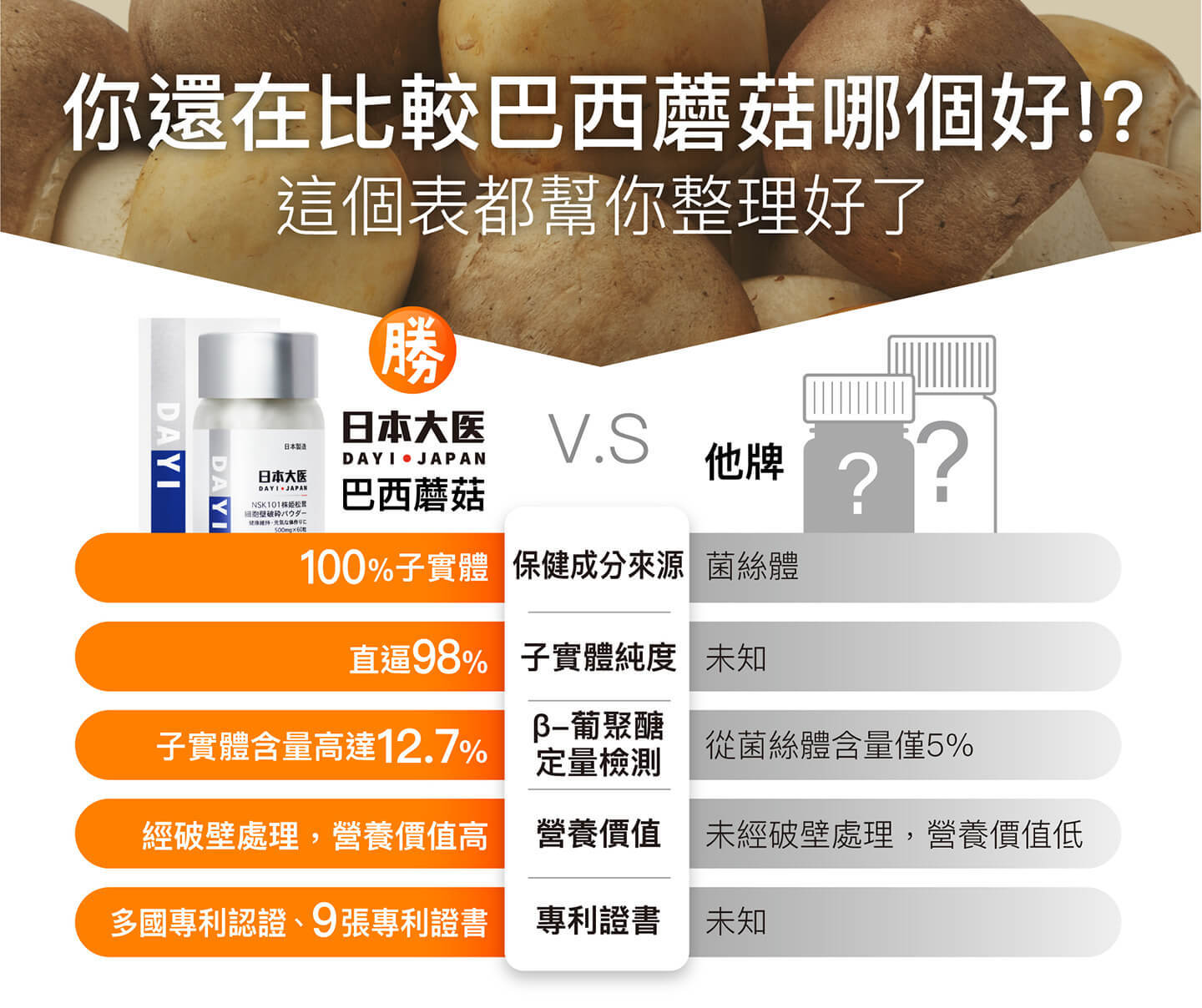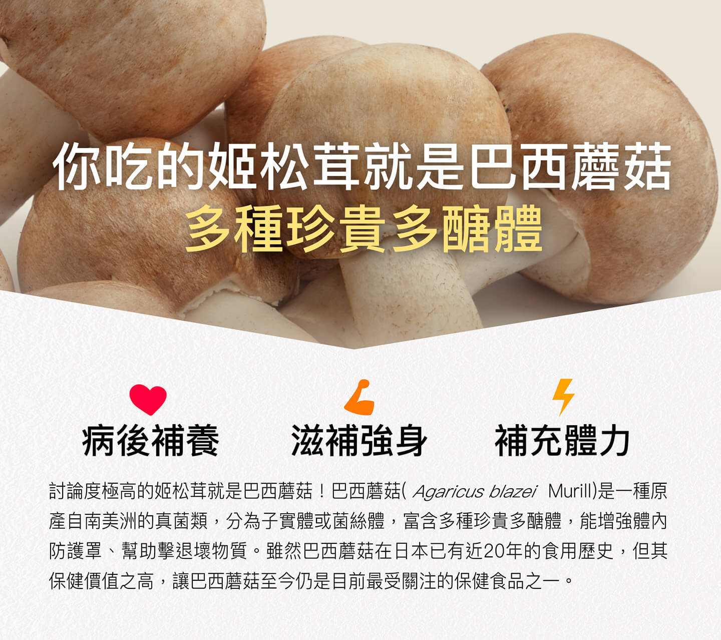 100%巴西蘑菇子實體萃取 (純度直逼98%)