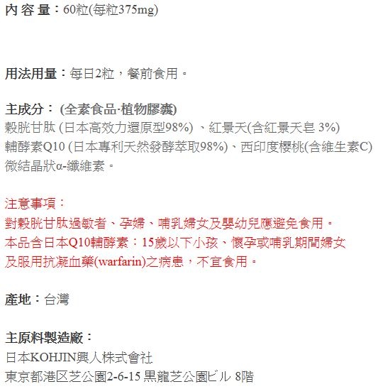*含紅景天、發酵Q10、西印度櫻桃萃取天然維生素C