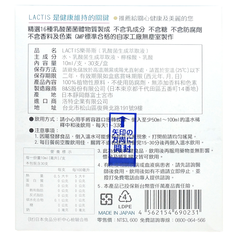 洛特日本 LACTIS 乳酸菌生成萃取液 (10ml/支、30支/盒)