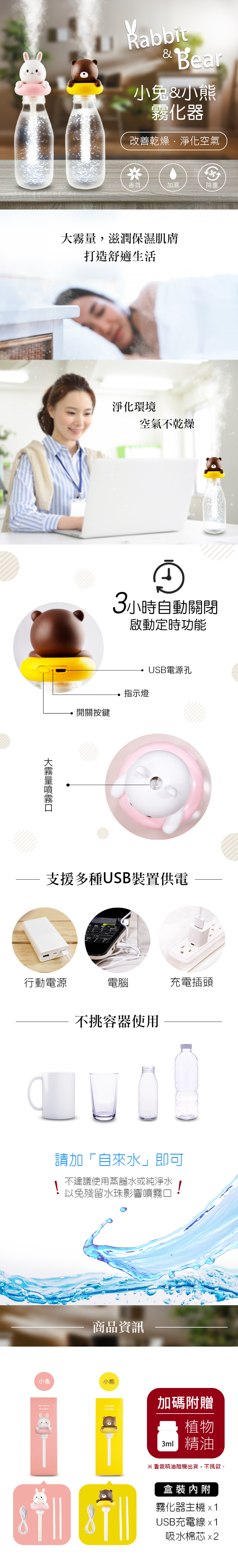 超萌小兔兔~加濕器,三小時定時關機使用安全。