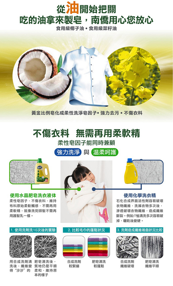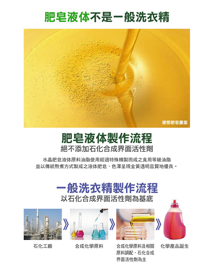 3.水晶肥皂液體洗淨力超強,髒污頑垢洗後自然淨白柔軟蓬鬆,無需再用柔軟精。