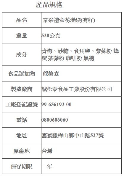 製造廠商:誠松泰食品工業股份有限公司