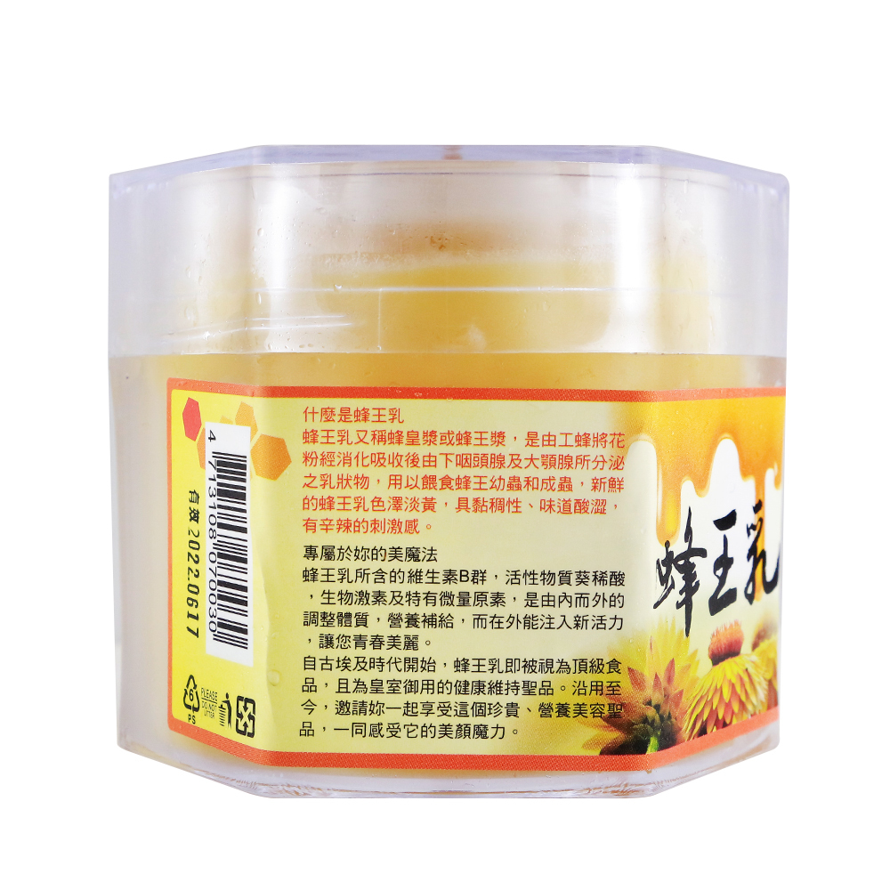 蜂王乳所含的維生素B群,活性物質葵稀酸,生物激素及特有的微量原素,是由內而外的調整體質,營養補給,而在外能注入新活力,讓您青春美麗。