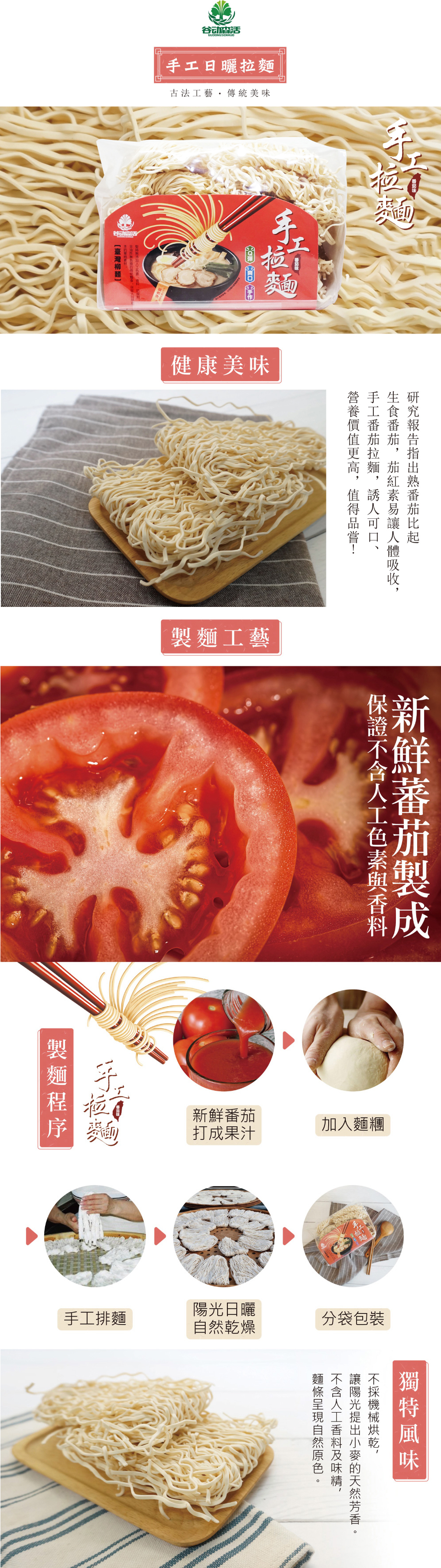 穀動森活-日曬手工拉麵 900g/包 (番茄口味)