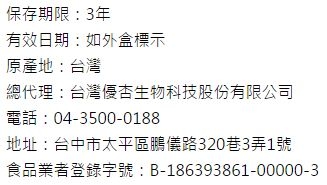 | 包裝份量: | 每一單位(份量)3公克,本包裝含30份 |