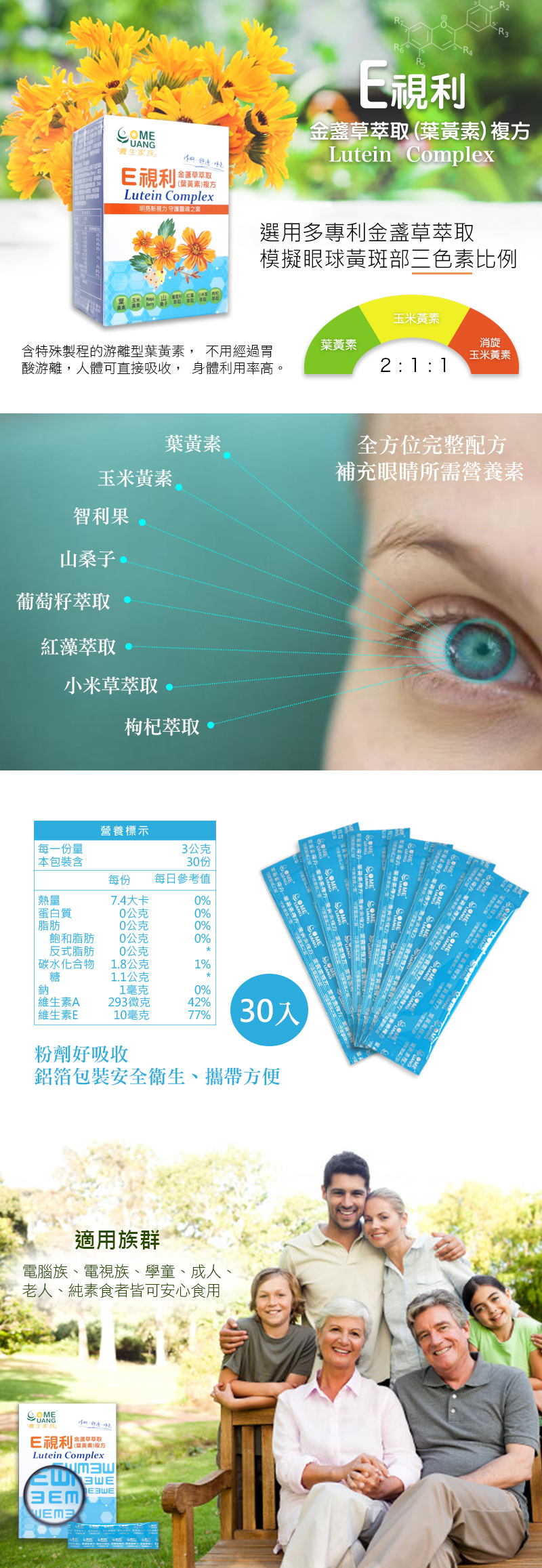 | 品名: | 康圓養生家族-E視利 金盞草萃取(葉黃素)複方 |