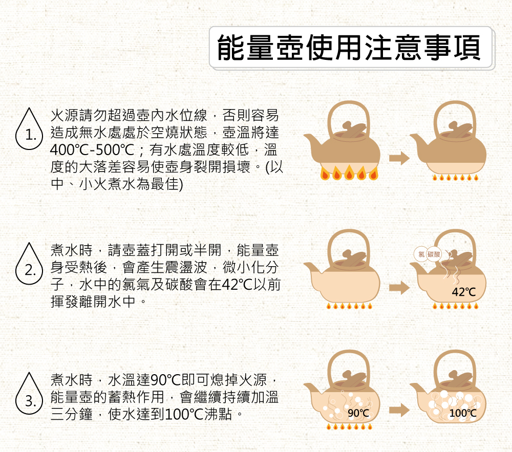 遠紅外線的作用使煮水不意出現水垢,並讓水更細緻好喝。