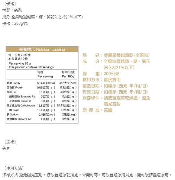 成份:蔓越莓乾