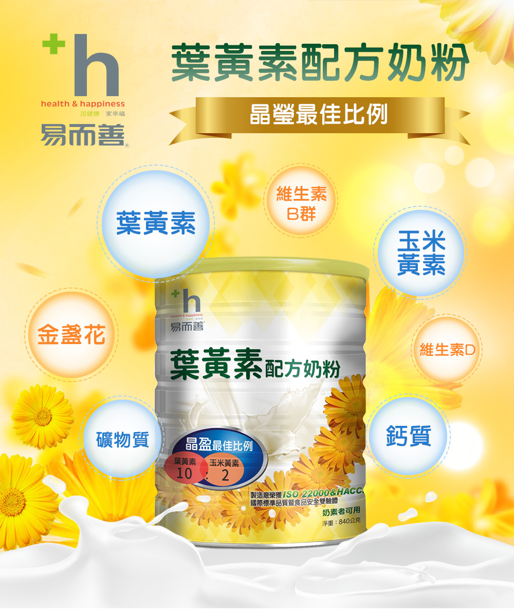 易而善 葉黃素配方奶粉,採用金盞花萃取,經過嚴謹加工,